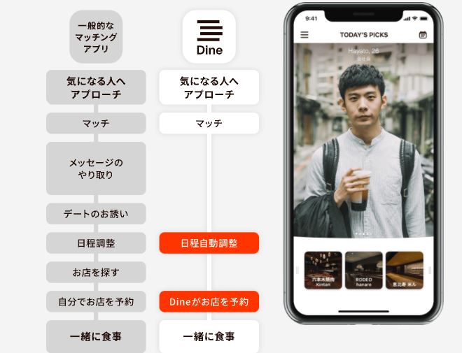 最近、婚活をしている男女に人気のマッチングアプリ「Dine」