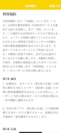 LEMONアプリをインストールすると、先ほどの利用規約に同意する必要があります。