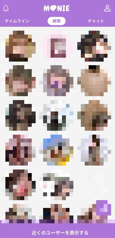このアプリの遊び方はいたってシンプルで、「タイムライン」か「ユーザー検索」のいづれかで相手を探します。
