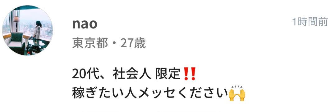 また、画像のような「稼ぎたい人はメッセージください」といったビジネス系のユーザーもいます。
