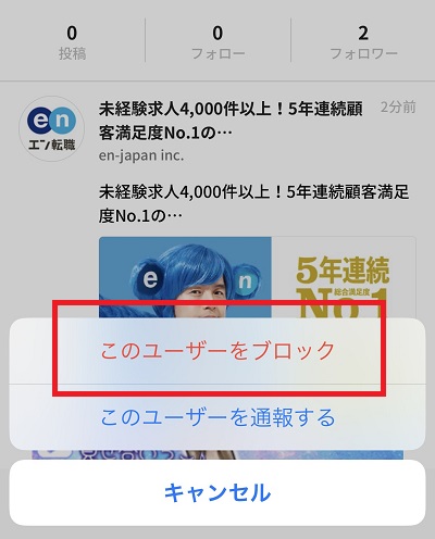 一度ブロックすると、二度とアプリ内に表示されることはありません。