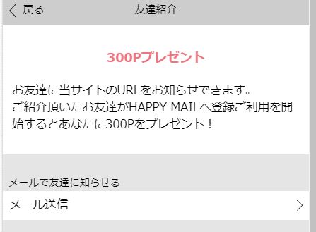 また、ハッピーメールではお友達紹介につき300ポイントもサービスがもらえます。