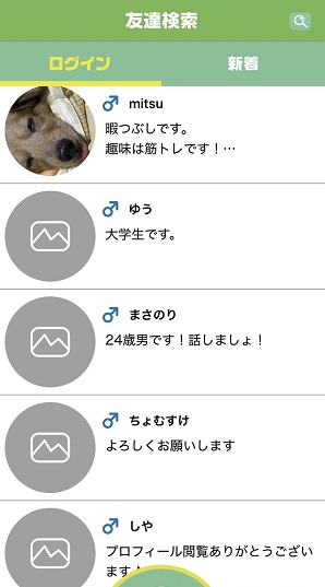 タダカツはリリースから数年たっているアプリで、男性のユーザーは割と多くいるようです。