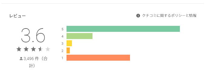 また、グーグルアプリの公式ストアではユーザー評価「3.6」という評価を得ていますが、中には「ヤラセ」と思われる書き込みも多くあります。