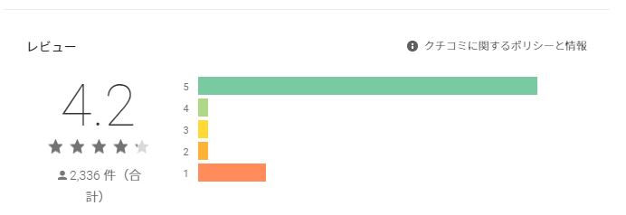 現在、グッディアプリはグーグルプレイの評価で「4.2」という高評価を得ています。ただし、大半が運営側による高い評価の書き込みだと思われますのであまりあてにはなりません・・。