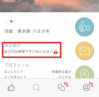 たとえば上記のような女性は自己紹介に「彼氏がいます」「会うのは無理です」といった文言が書いてありました。