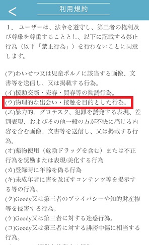 利用規約をみてみると「ユーザーの出会いや接触」は禁止行為とされていました。