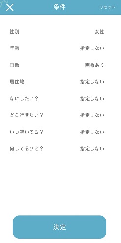 使い方は非常にシンプルで、年齢や居住地などの条件検索で相手を検索できます。