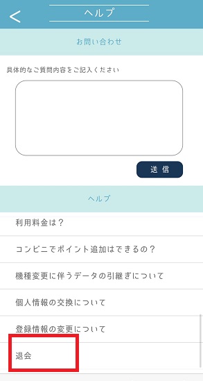 退会はややわかりずらい場所にありますが、「メニュー」➡「ヘルプ」➡「退会」という順で処理ができます!
