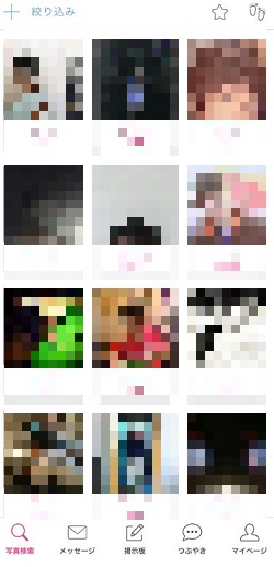 プロフィール入力が終わると、アプリ版では男性の検索と掲示板投稿ができます。