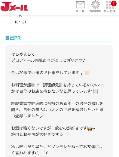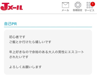今回は実際にJメールでパパ活していると思われる女の子のプロフィールをいくつか紹介しますので、ぜひ参考にしてみてください!!