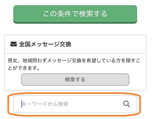 ①掲示板の検索画面、最下部にある「キーワードから探す」を選択します。