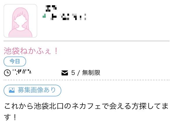 大抵の場合は、すでに女性がネカフェに入店しており「これから会いたい」といったリアルタイムな投稿が多いです。