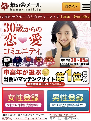 さて、今回ご紹介する華の会メールは「中高年の出会いを応援」する中高年や熟女に特化したサイトです。