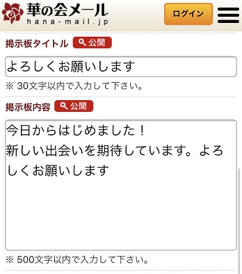 登録時に最初の掲示板投稿もできますので、自己紹介や出会いの目的をしっかり記入すると良いかもしれません。