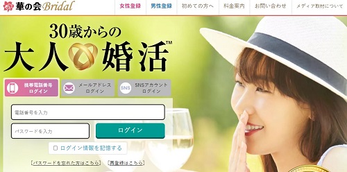 ちなみに、今回は中高年の出会い系サイト「華の会メール」をご紹介していますが・・実は同じ会社が中高年の婚活サイト「華かいブライダル」というサービスも展開しています。