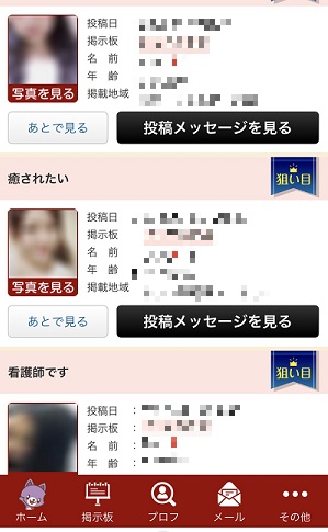 ただ、掲示板や女性ユーザーを見る限り、業者や怪しい存在の会員も多いので要注意ですね・・