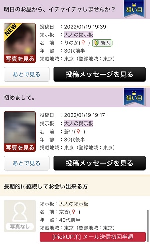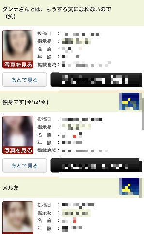 名前の通り、ほとんどの書き込みは「割り切った交際」「セフレ募集」といったものが多いです。
