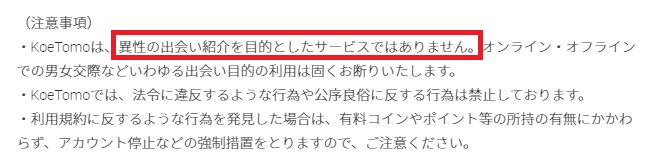 公式の利用規約の中にもしっかりと「異性の出会い目的サービスではありません」という記載がありました。