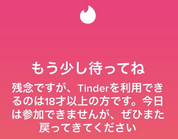 逆に18歳以上である確認ができない場合、tinderは使うことができません。